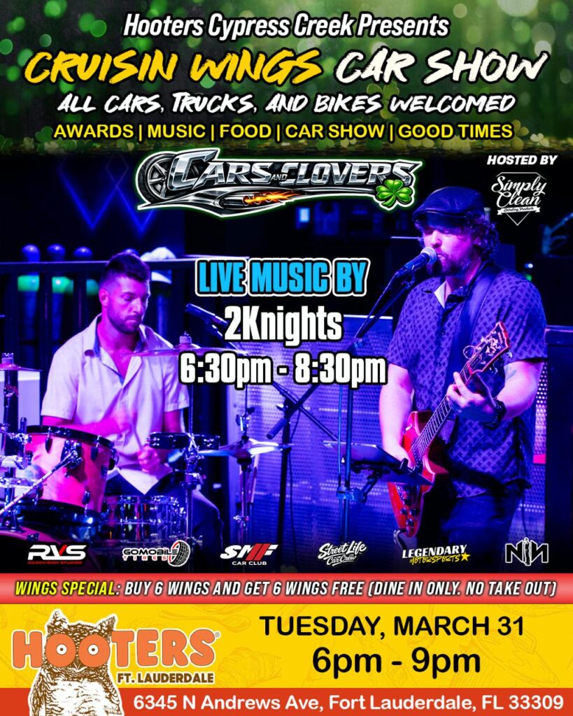 Upcoming Shows Past Shows Tuesday, February 24Hooters, Fort Lauderdale Saturday, February 14Munchies Pizza Club Tuesday, January 27Hooters, Fort Lauderdale